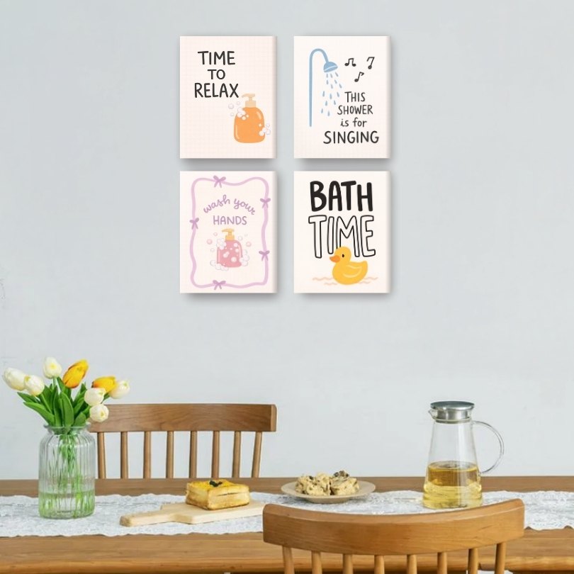 4 Mini Gemälde | Badezimmer Zitate Set Malen nach zahlen
