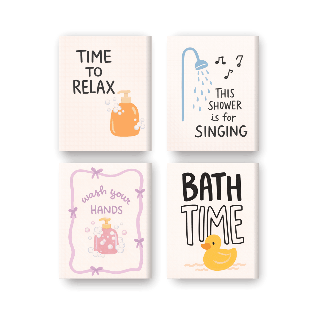 4 Mini-Gemälde | Badezimmer Zitate Set