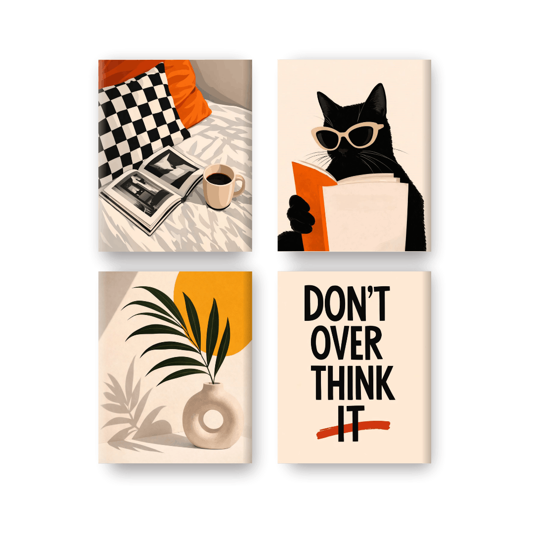 4 Mini Gemälde | Modernes Wohnen Set
