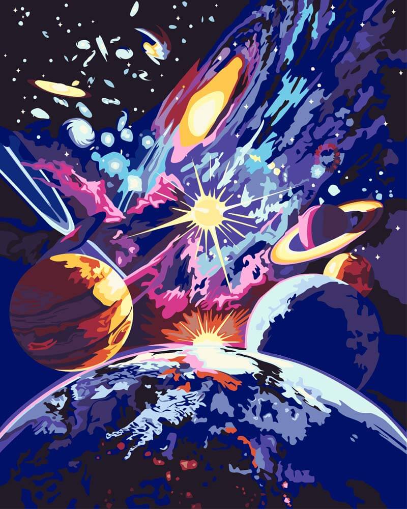 Dann sind unsere Malen nach Zahlen Sets genau das richtige für Dich! Lasse Deinen Gedanken freien Lauf und tauche ein in die vielfältige Welt der bunten Farben! Unser Motiv "Malen nach Zahlen - Komplexes Weltall" wird auch Dich künstlerisch bereichern und Dein Zuhause verschönern.