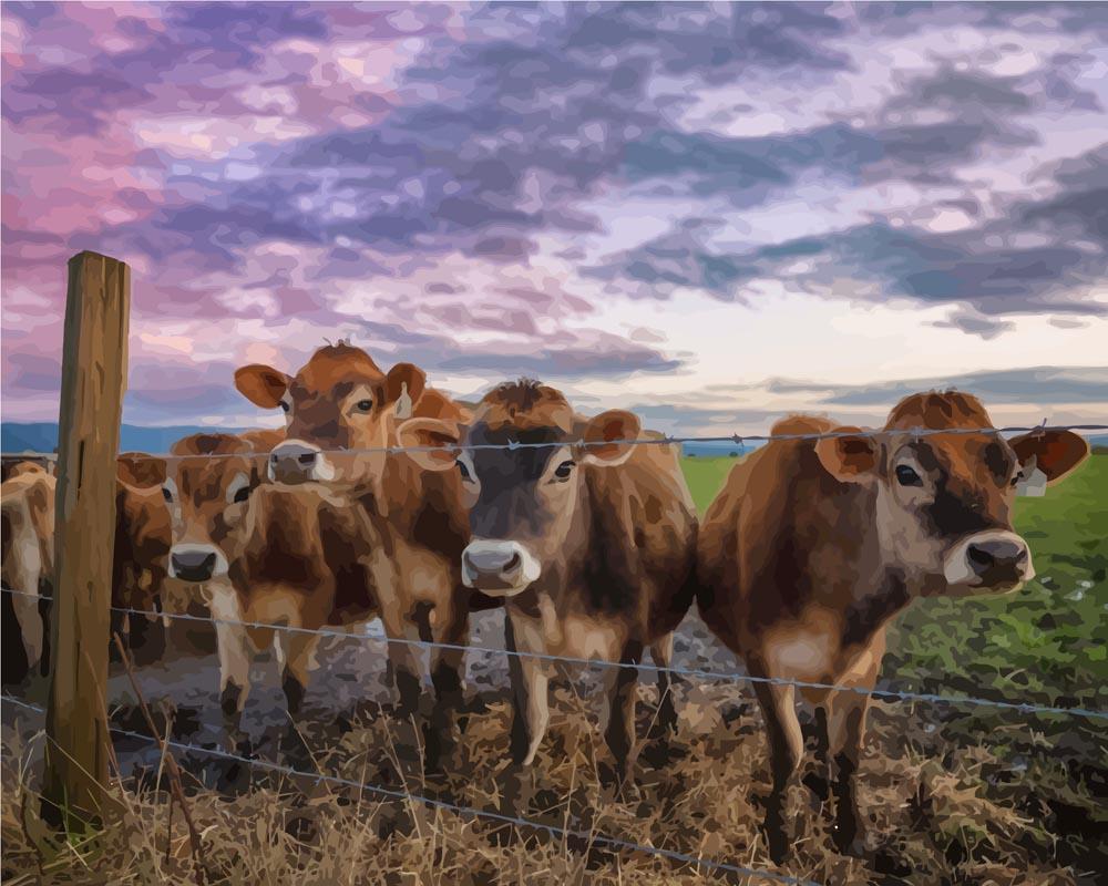 Malen nach Zahlen - Kühe bei Sonnenuntergang