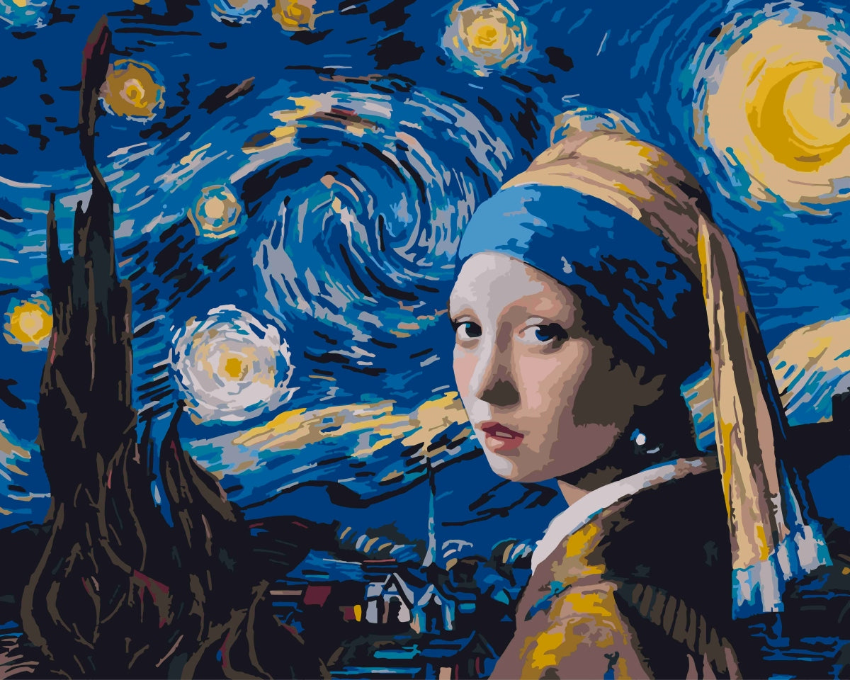 Malen nach Zahlen - Mädchen mit Perlenohrring in der Sternennacht