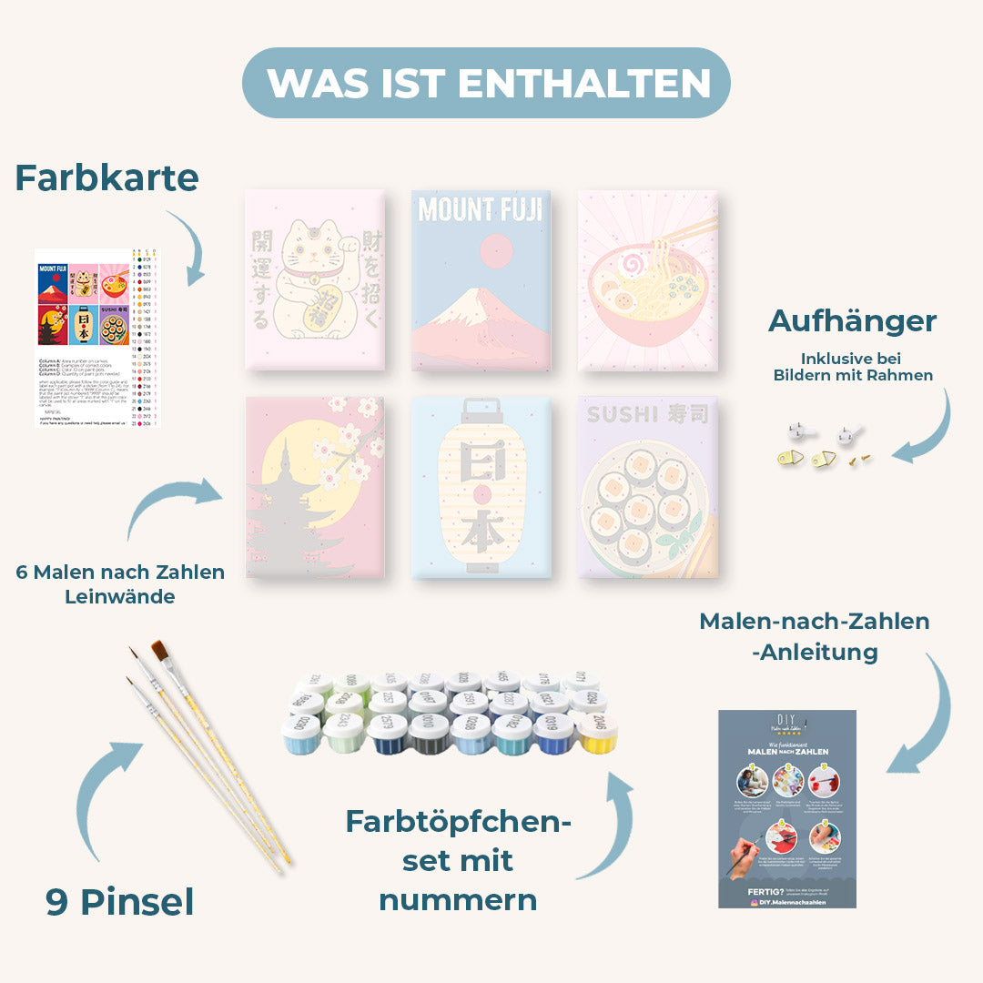 Malen nach Zahlen – 6 Mini Gemälde | Japan Set Malen nach zahlen