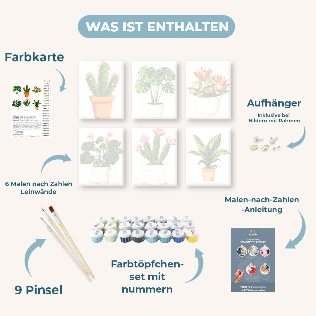 Malen nach Zahlen – 6 Mini Gemälde | Wunderschöne Pflanzen Set
