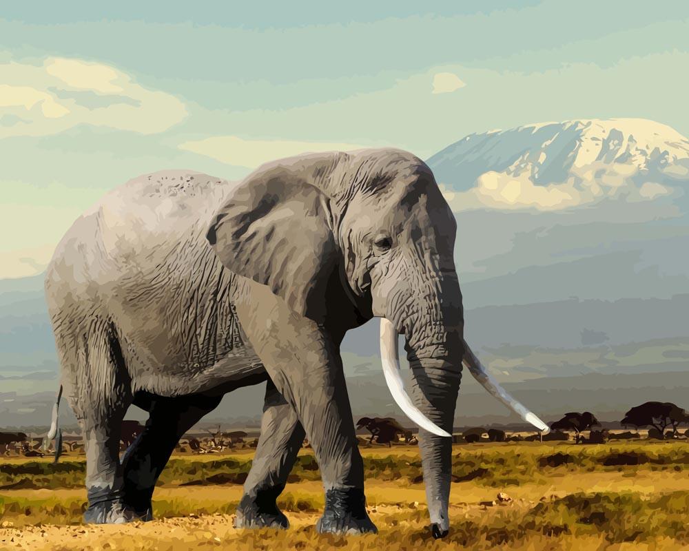Malen nach Zahlen   Malen nach Zahlen   Elefant in den Bergen