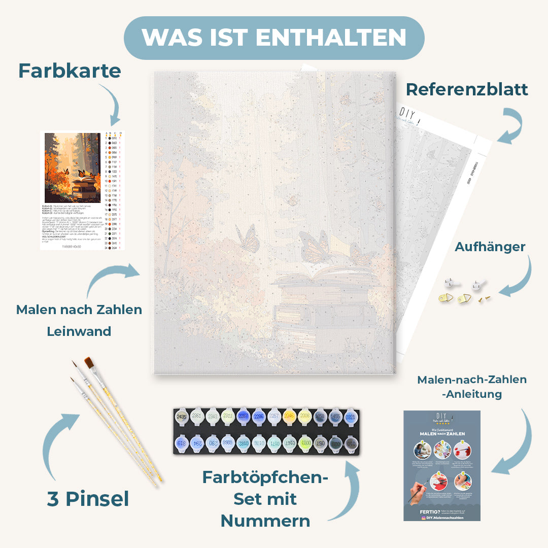 Unser "Malen nach Zahlen - Herbstgeschichten" Motiv lädt Dich auf eine kreative Entdeckungsreise ein. Du kannst Dich in aller Ruhe entspannen und den Malprozess genießen – wir liefern Dir alle passenden Malutensilien in einem rundum-sorglos DIY Set, sodass Du Dich allein auf die Kunst konzentrieren kannst.