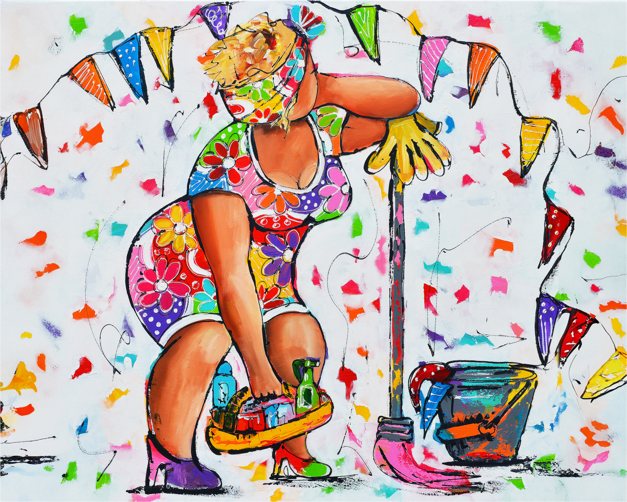 Fröhliche Malerei - Dicke Damen Putzen
