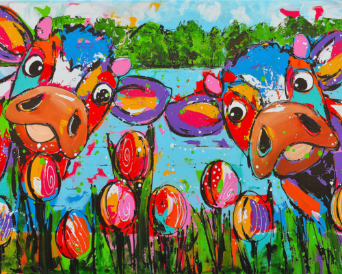 Unser "Fröhliche Malerei - Kühe mit Tulpen" Motiv lädt Dich auf eine kreative Entdeckungsreise ein. Du kannst Dich in aller Ruhe entspannen und den Malprozess genießen – wir liefern Dir alle passenden Malutensilien in einem rundum-sorglos DIY Set, sodass Du Dich allein auf die Kunst konzentrieren kannst.