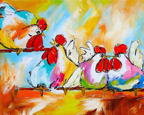 Fröhliche Malerei - Küssende Hühner