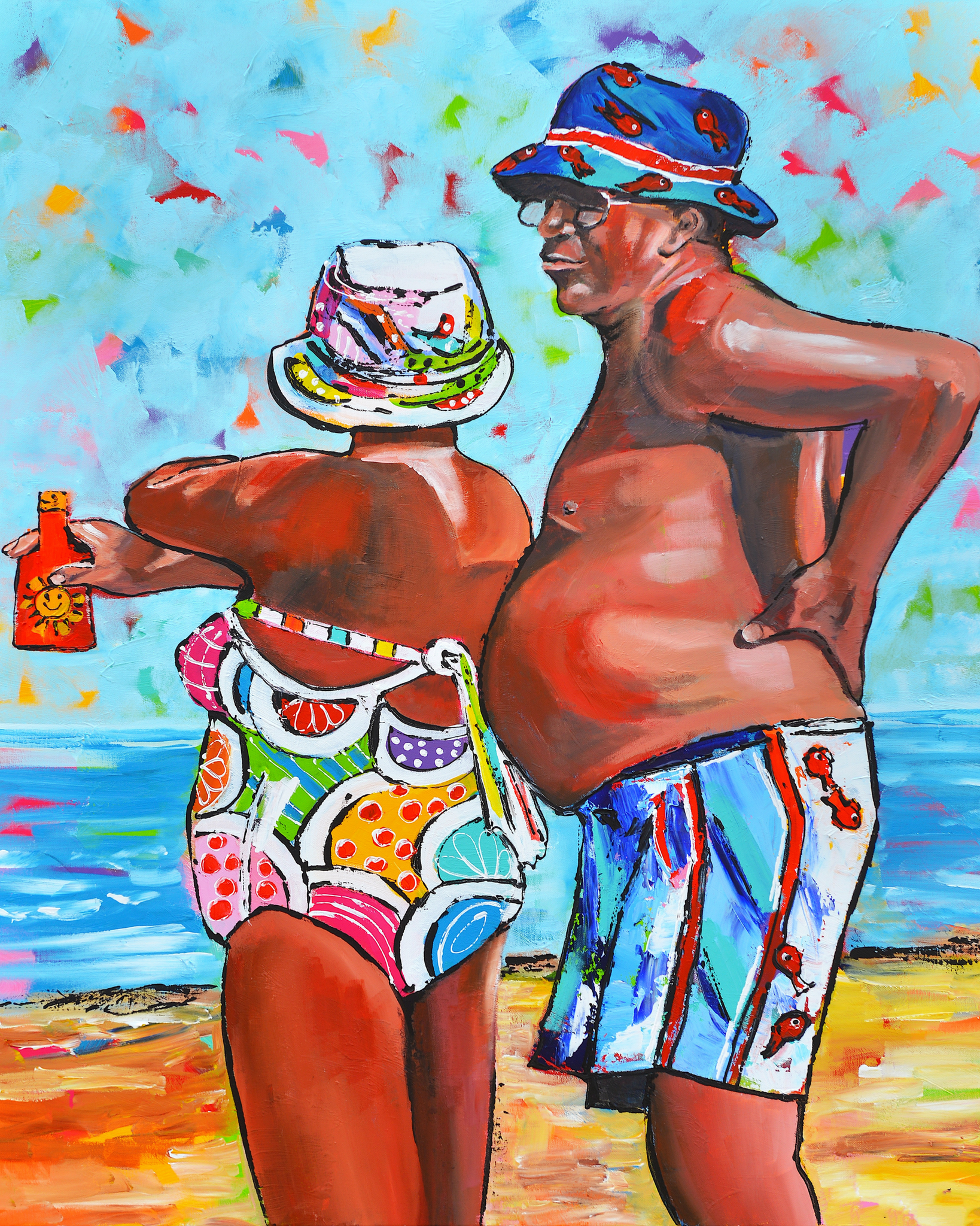 Fröhliche Malerei - Urlaubs-Paar
