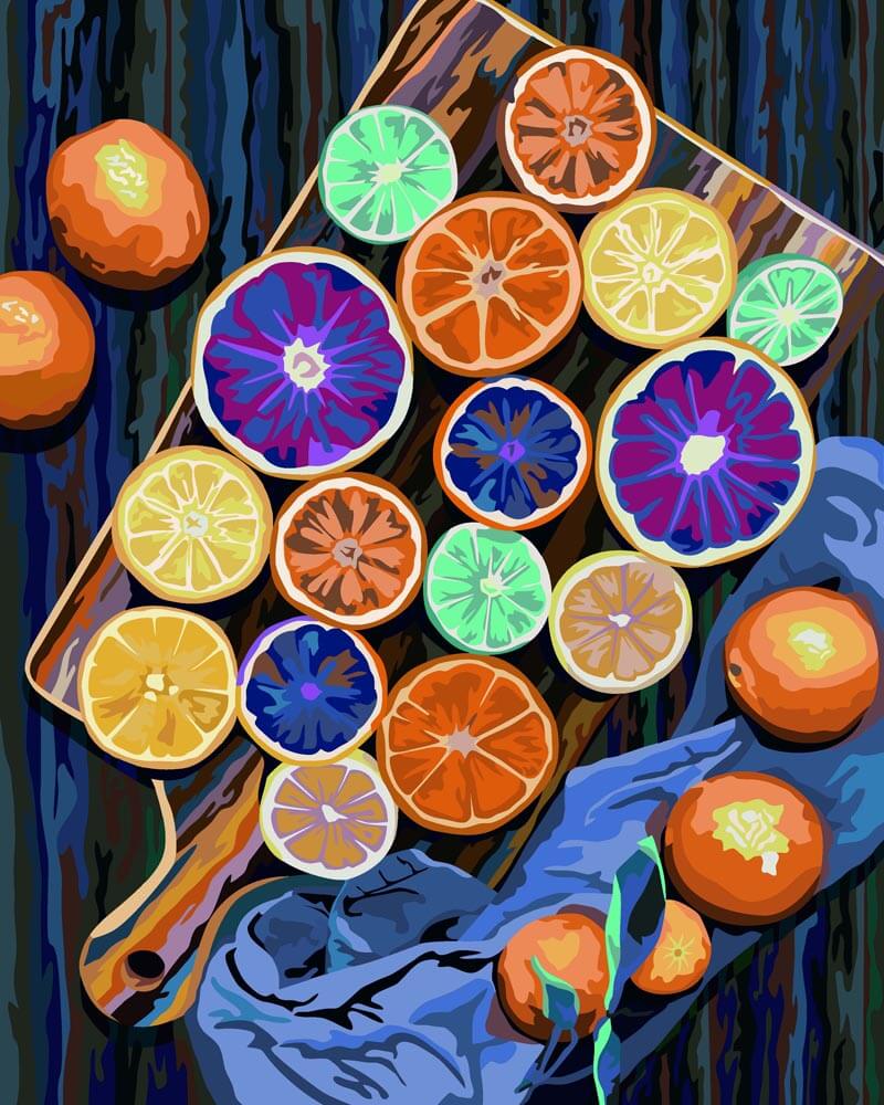Dann sind unsere Malen nach Zahlen Sets genau das richtige für Dich! Lasse Deinen Gedanken freien Lauf und tauche ein in die vielfältige Welt der bunten Farben! Unser Motiv "Malen nach Zahlen - Fruchtiges Brett" wird auch Dich künstlerisch bereichern und Dein Zuhause verschönern.