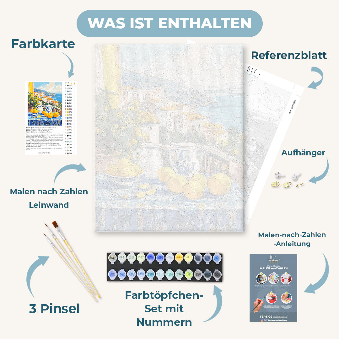 Noch nicht überzeugt? Wir sind stolz darauf, mit DIY Malen nach Zahlen bereits Tausenden von Kunden ein ganz einzigartiges Kunsterlebnis vermitteln zu dürfen. Unser "Malen nach Zahlen - Orangen mit Aussicht" Motiv lässt Dich für einige Stunden den Alltagsstress vergessen und in eine ganz neue Welt eintauchen.