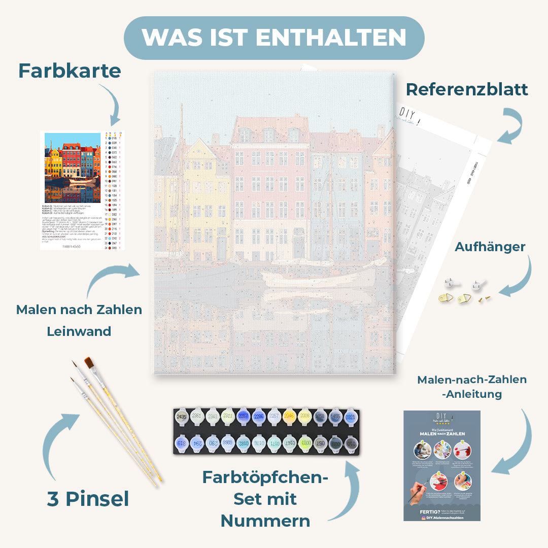 Malen nach Zahlen - Farbenfrohes Kopenhagen