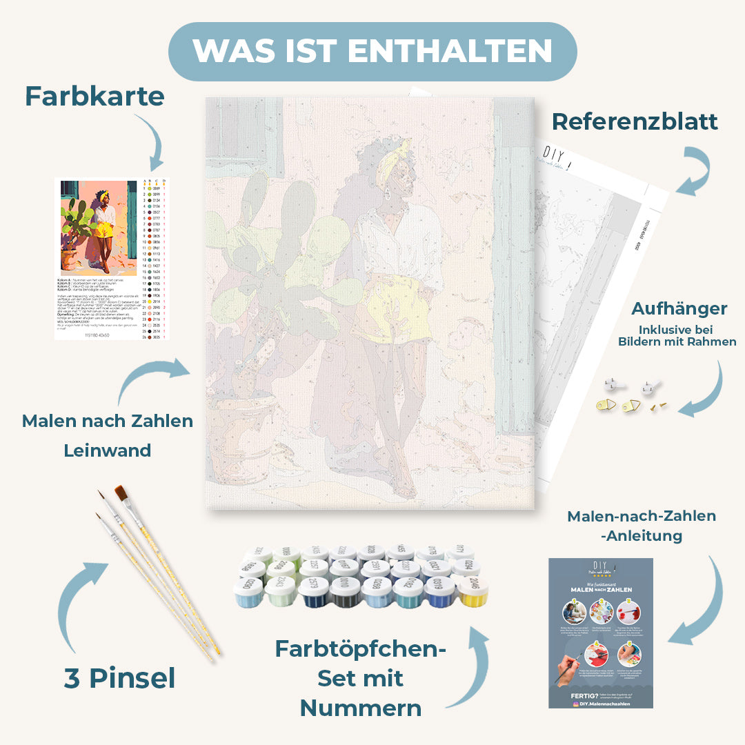 Dann sind unsere Malen nach Zahlen Sets genau das richtige für Dich! Lasse Deinen Gedanken freien Lauf und tauche ein in die vielfältige Welt der bunten Farben! Unser Motiv "Sonnenlichtes Selbstvertrauen" wird auch Dich künstlerisch bereichern und Dein Zuhause verschönern.