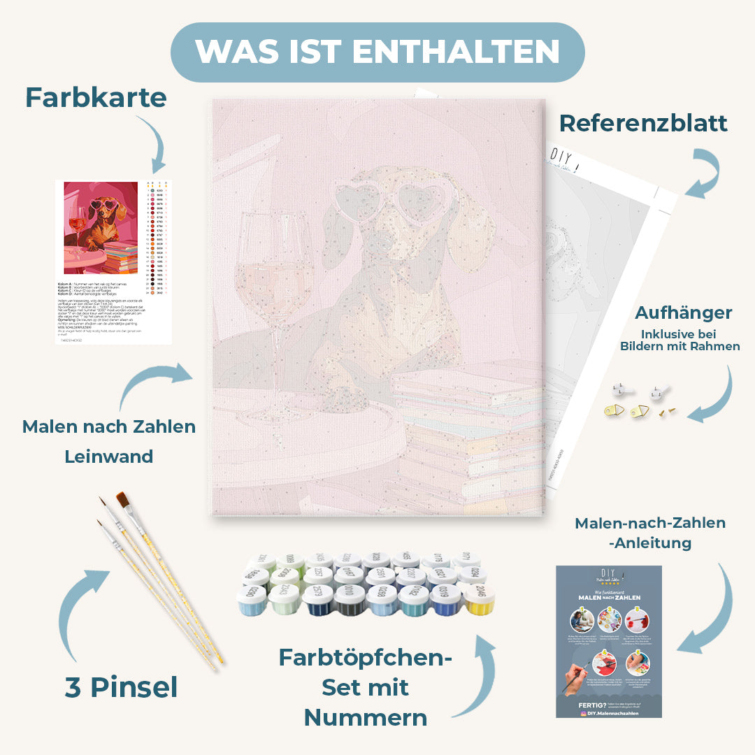 Unser "Malen nach Zahlen - Dackel in Pink" Motiv lädt Dich auf eine kreative Entdeckungsreise ein. Du kannst Dich in aller Ruhe entspannen und den Malprozess genießen – wir liefern Dir alle passenden Malutensilien in einem rundum-sorglos DIY Set, sodass Du Dich allein auf die Kunst konzentrieren kannst.