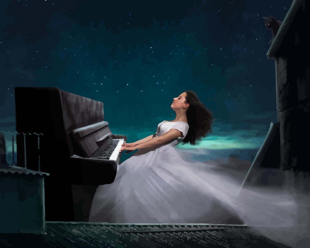 Malen nach Zahlen - Frau musiziert auf dem Dach