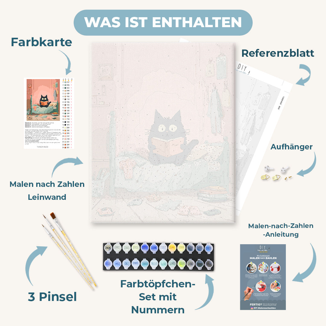 Malen nach Zahlen - Die schwarze Katze im Schlafzimmer