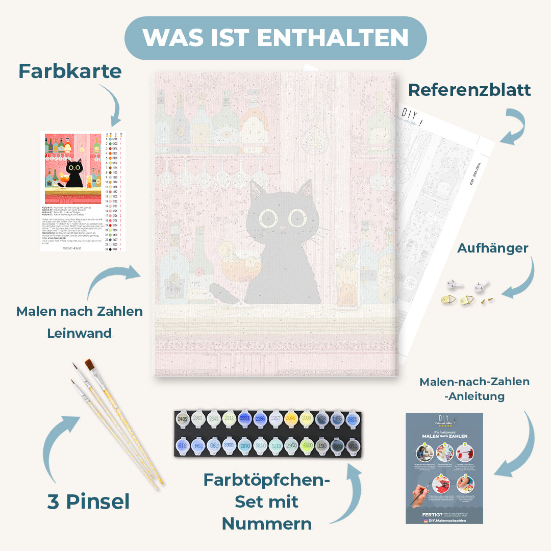 Malen nach Zahlen - Die schwarze Katze in der Bar