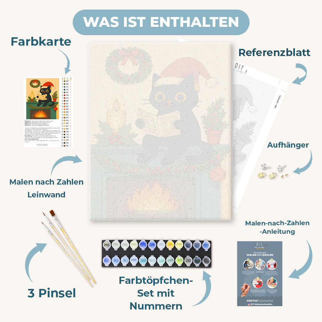 Malen nach Zahlen - Eine Katze am Kamin