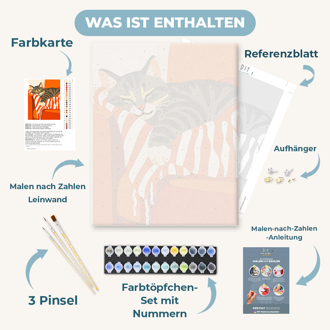 Unser "Malen nach Zahlen - Süßestes Nickerchen" Motiv lädt Dich auf eine kreative Entdeckungsreise ein. Du kannst Dich in aller Ruhe entspannen und den Malprozess genießen – wir liefern Dir alle passenden Malutensilien in einem rundum-sorglos DIY Set, sodass Du Dich allein auf die Kunst konzentrieren kannst.
