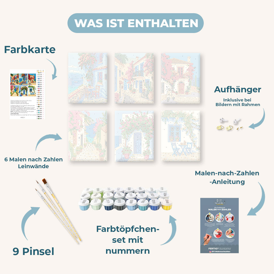 6 Mini Gemälde | Mediterranes Set Malen nach zahlen