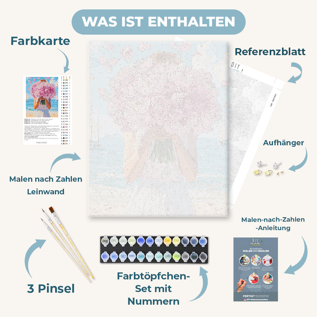 Unser "Malen nach Zahlen - Blumige Brise" Motiv lädt Dich auf eine kreative Entdeckungsreise ein. Du kannst Dich in aller Ruhe entspannen und den Malprozess genießen – wir liefern Dir alle passenden Malutensilien in einem rundum-sorglos DIY Set, sodass Du Dich allein auf die Kunst konzentrieren kannst.