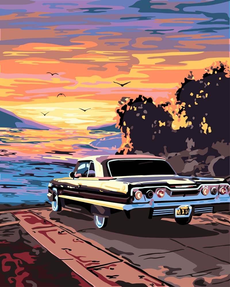 Malen nach Zahlen - Oldtimer bei Sonnenuntergang