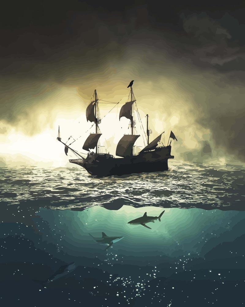 Dann sind unsere Malen nach Zahlen Sets genau das richtige für Dich! Lasse Deinen Gedanken freien Lauf und tauche ein in die vielfältige Welt der bunten Farben! Unser Motiv "Malen nach Zahlen - Segelschiff mit Haien" wird auch Dich künstlerisch bereichern und Dein Zuhause verschönern.