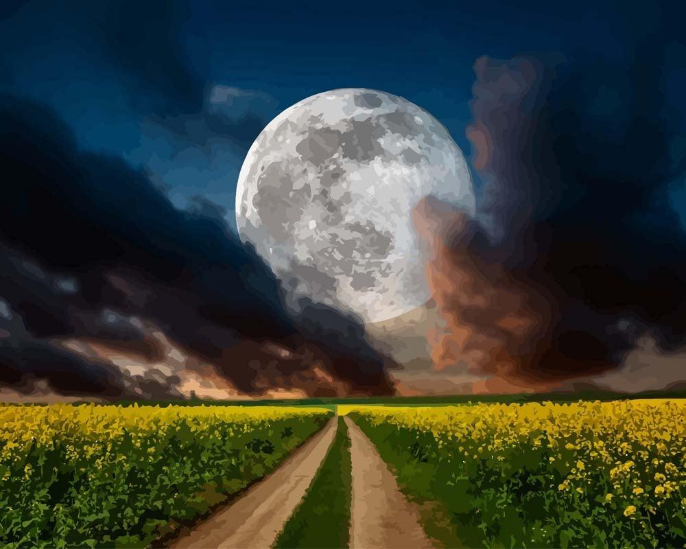 Malen nach Zahlen - Wiese im Vollmondlicht