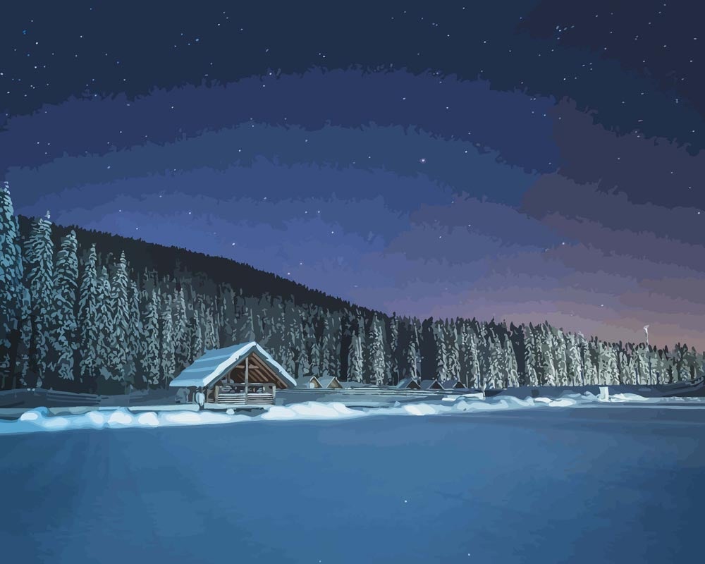 Malen nach Zahlen - Winterwald bei Nacht