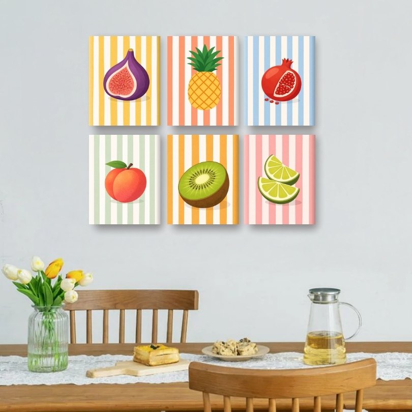 6 Mini Gemälde | Gestreifte Früchte Set Malen nach zahlen