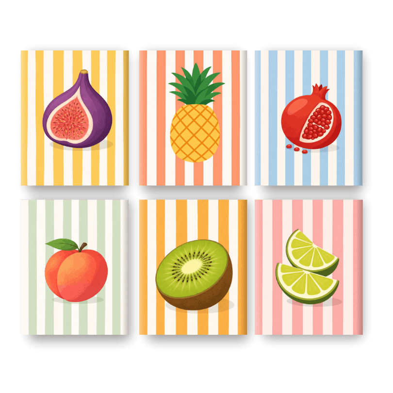 6 Mini-Gemälde | Gestreifte Früchte Set