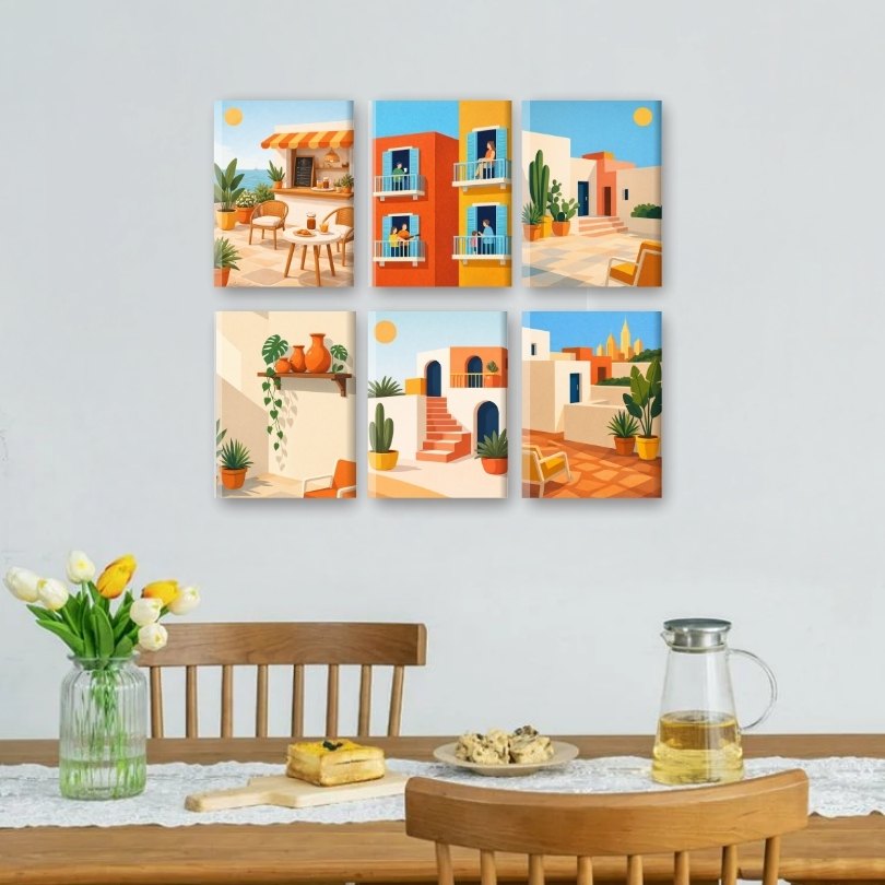 6 Mini-Gemälde | Mediterranes Dorf Set