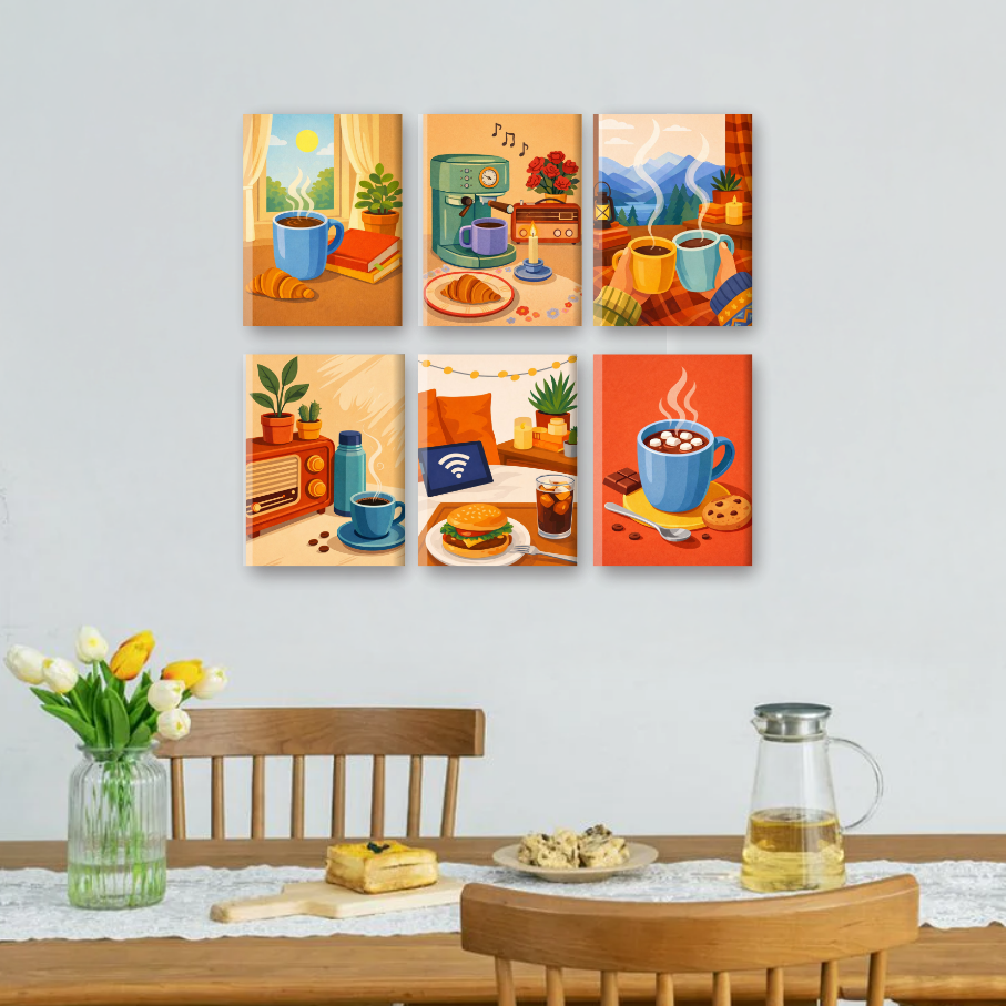 6 Mini Gemälde | Morgenkaffee Set Malen nach zahlen