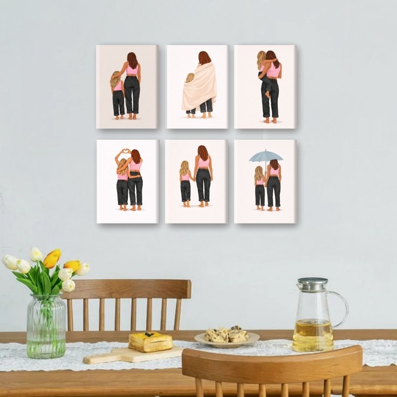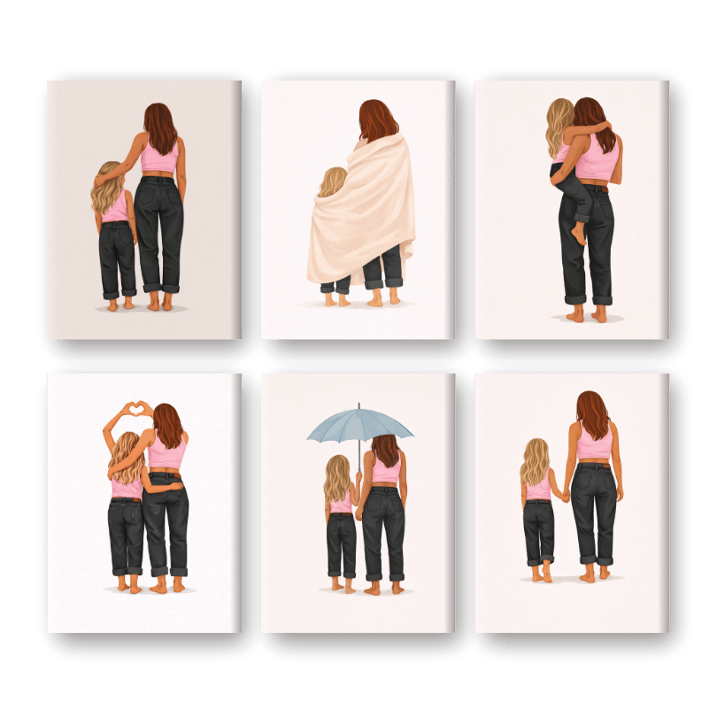 6 Mini Gemälde | Mutter & Tochter Liebe Set