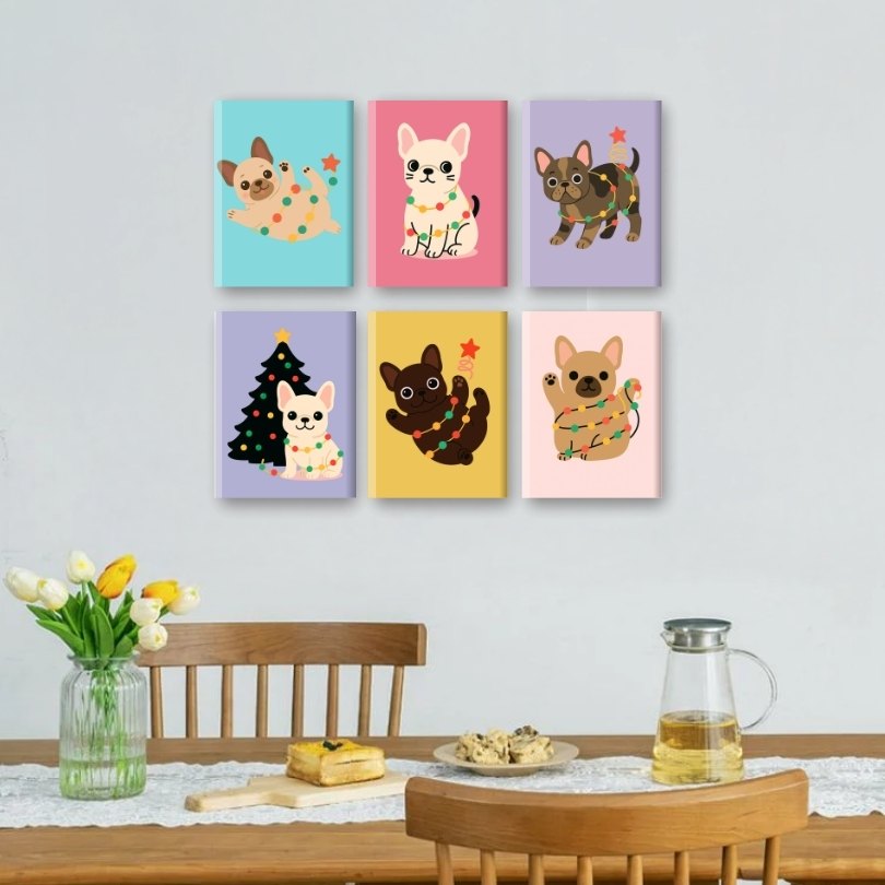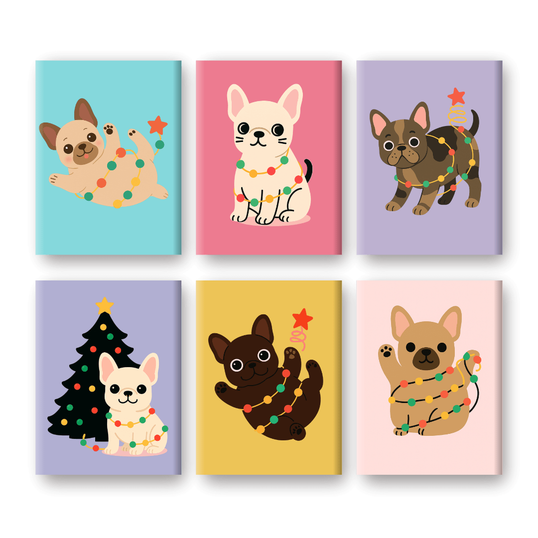 6 Mini-Gemälde | Weihnachts-Bulldoggen-Set