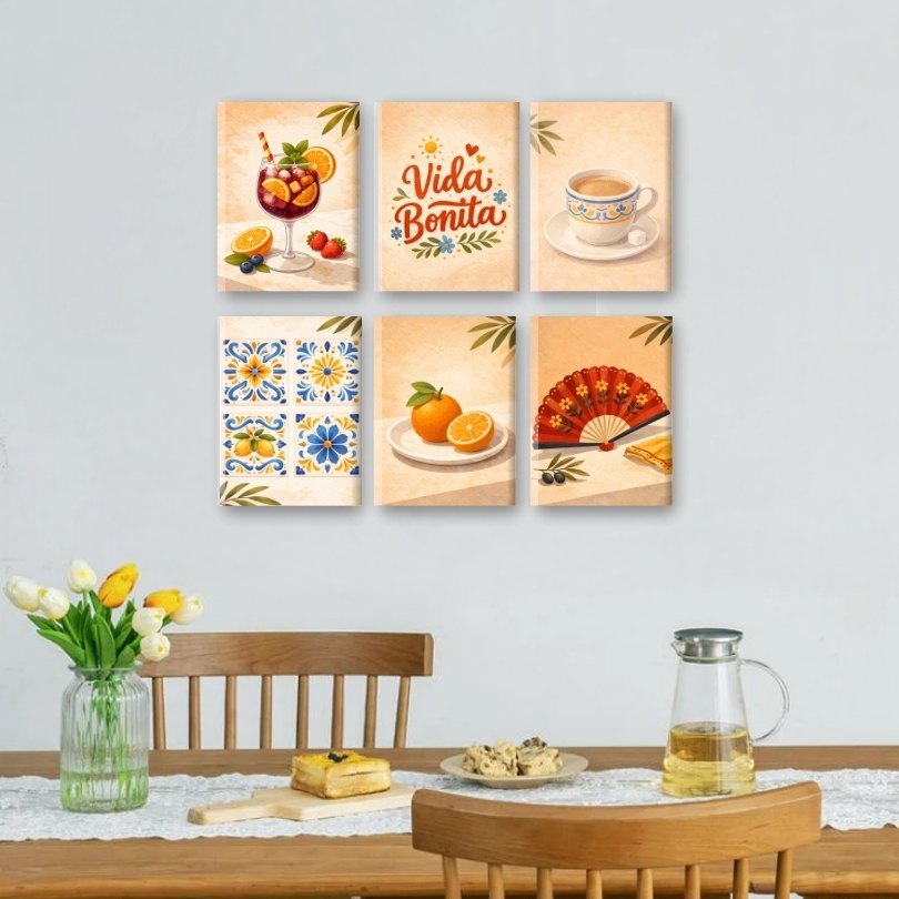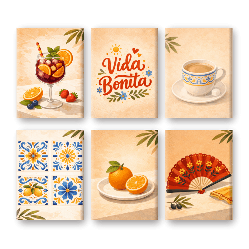 6 Mini Gemälde | Spanisches Vida Bonita Set