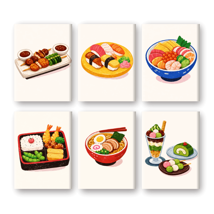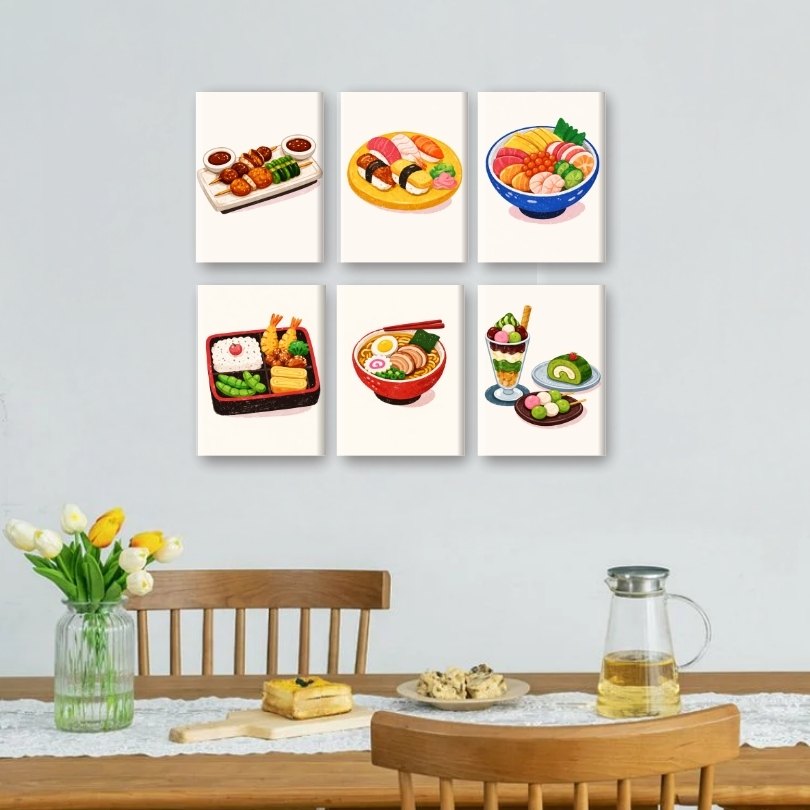 6 Mini-Gemälde | Sushi-Dinner Set