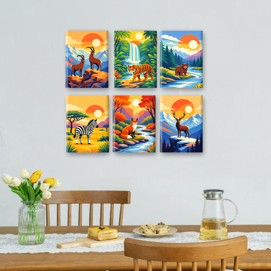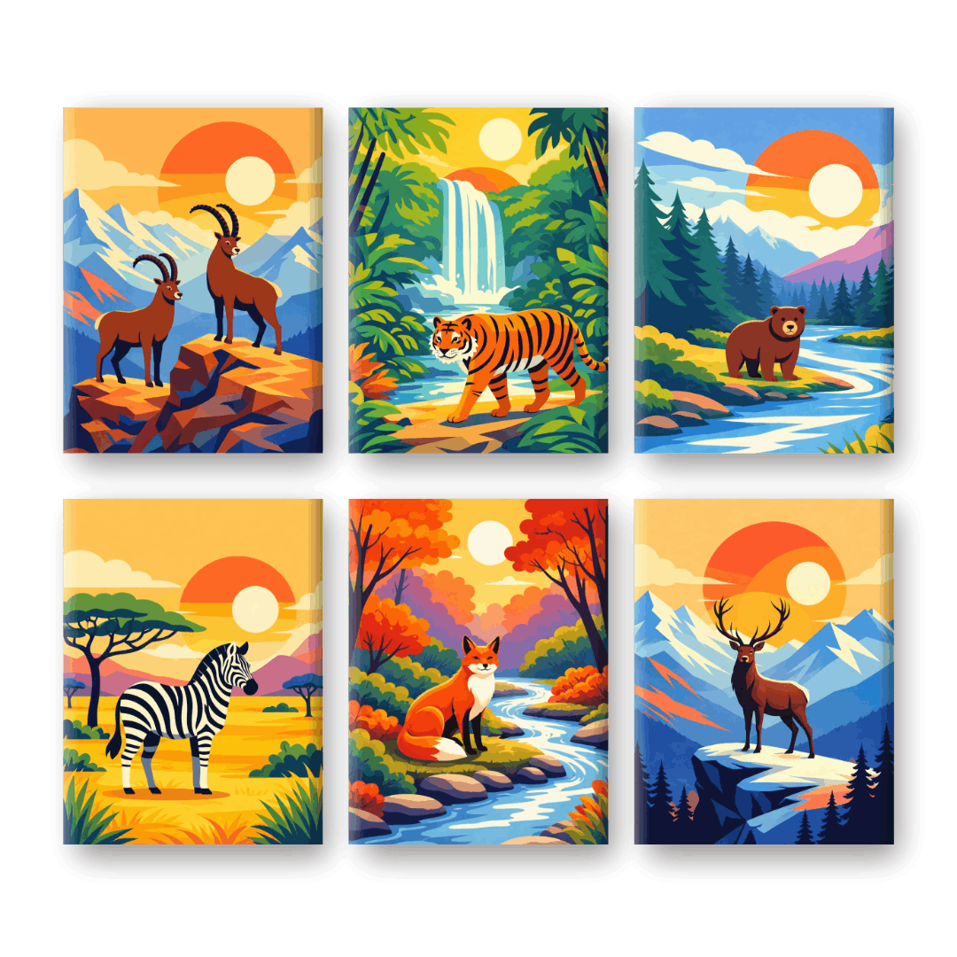 6 Mini Gemälde | Tiere & Landschaften Set Malen nach zahlen