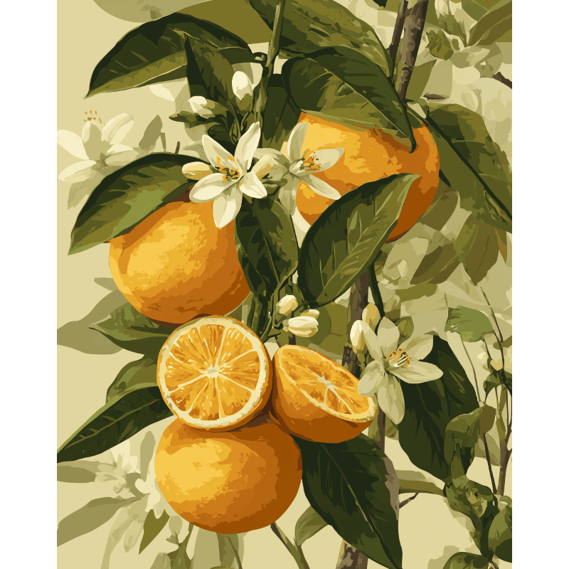 Dann sind unsere Malen nach Zahlen Sets genau das richtige für Dich! Lasse Deinen Gedanken freien Lauf und tauche ein in die vielfältige Welt der bunten Farben! Unser Motiv "Blühende Zitrusfrüchte" wird auch Dich künstlerisch bereichern und Dein Zuhause verschönern.
