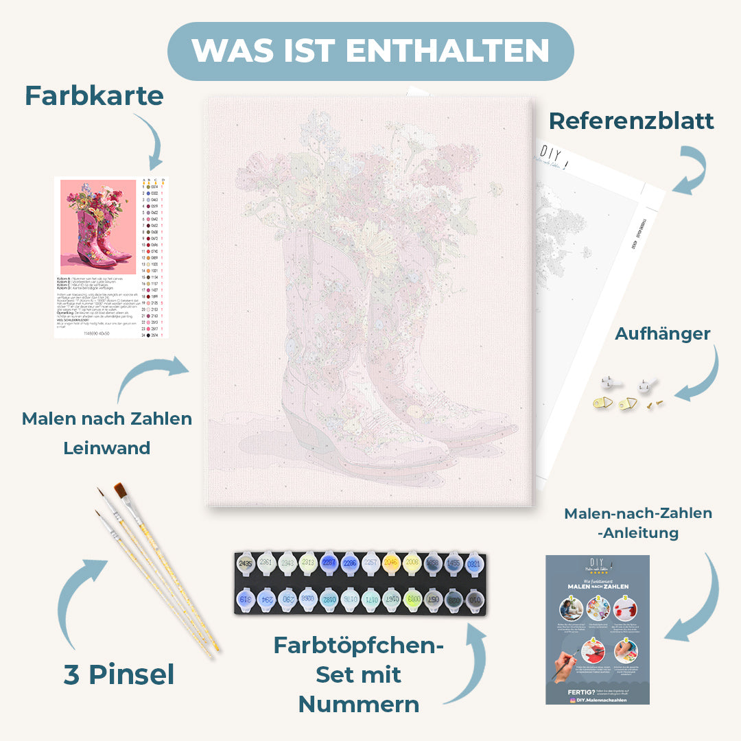 Malen nach Zahlen - Cowboy-Stiefel mit Blumen