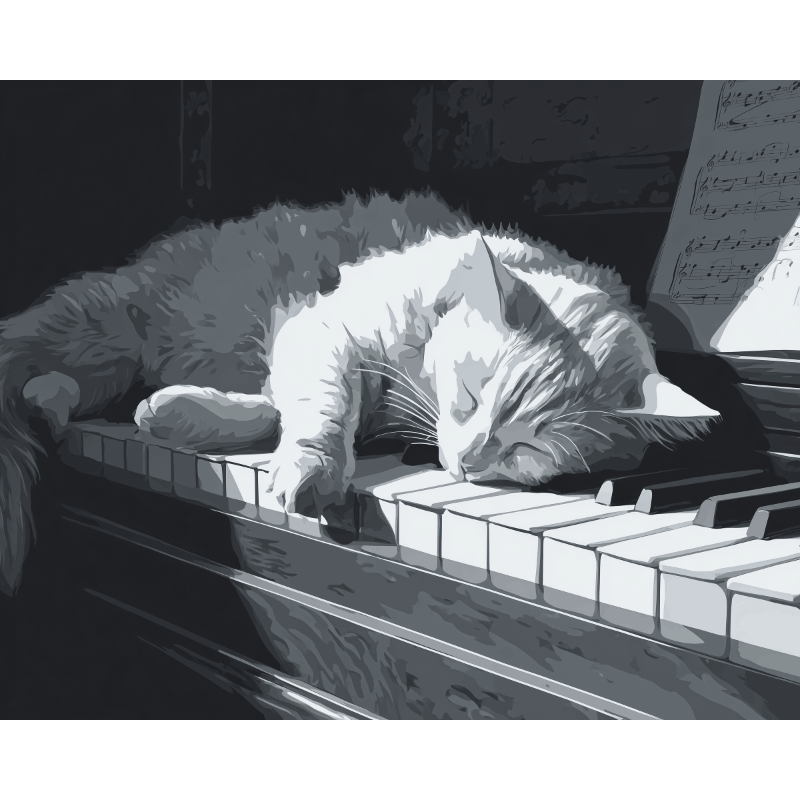 Dann sind unsere Malen nach Zahlen Sets genau das richtige für Dich! Lasse Deinen Gedanken freien Lauf und tauche ein in die vielfältige Welt der bunten Farben! Unser Motiv "Katze auf dem Klavier" wird auch Dich künstlerisch bereichern und Dein Zuhause verschönern.