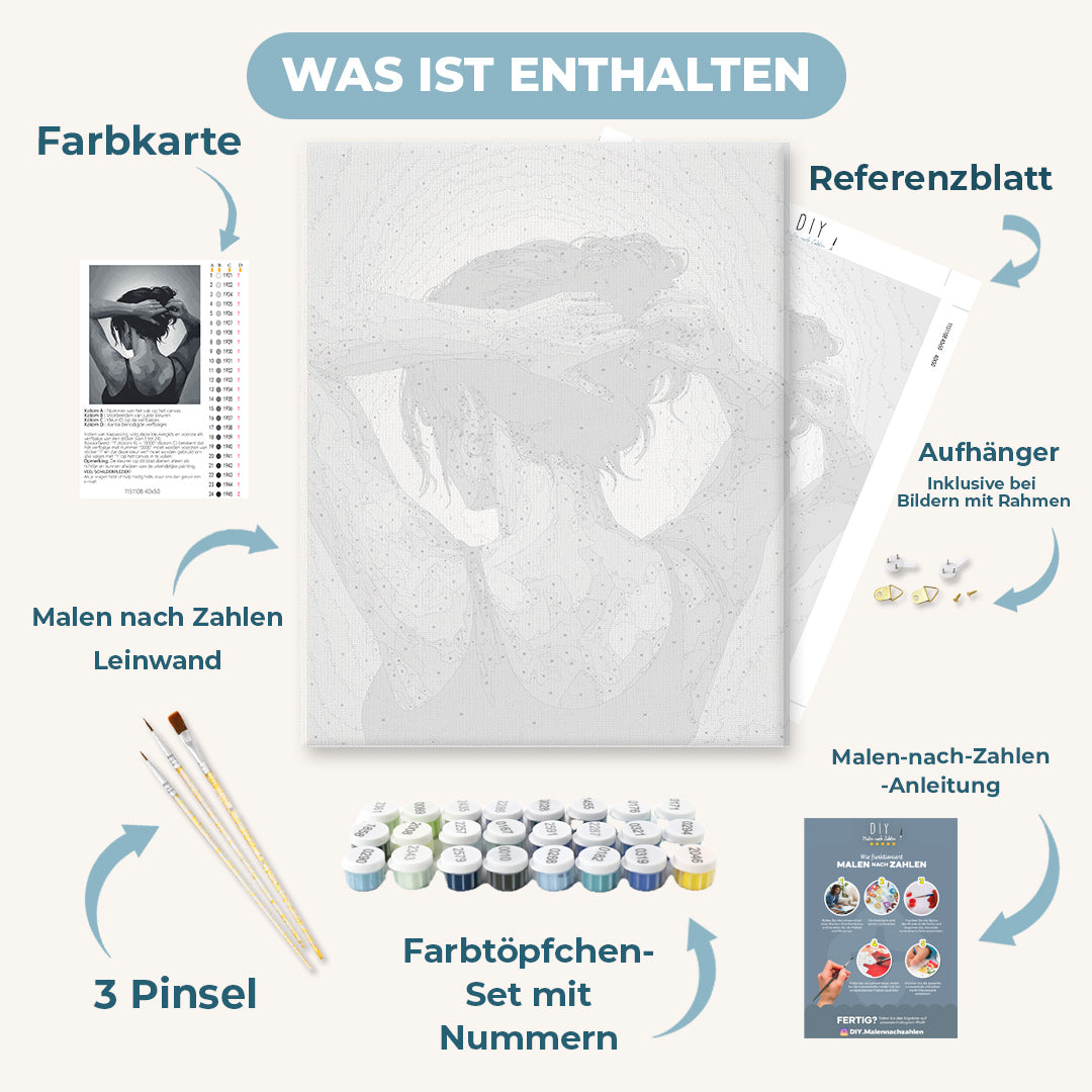Unser "Malen nach Zahlen - Monochrome Dame" Motiv lädt Dich auf eine kreative Entdeckungsreise ein. Du kannst Dich in aller Ruhe entspannen und den Malprozess genießen – wir liefern Dir alle passenden Malutensilien in einem rundum-sorglos DIY Set, sodass Du Dich allein auf die Kunst konzentrieren kannst.