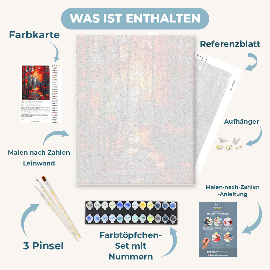 Unser "Malen nach Zahlen - Waldglanz" Motiv lädt Dich auf eine kreative Entdeckungsreise ein. Du kannst Dich in aller Ruhe entspannen und den Malprozess genießen – wir liefern Dir alle passenden Malutensilien in einem rundum-sorglos DIY Set, sodass Du Dich allein auf die Kunst konzentrieren kannst.