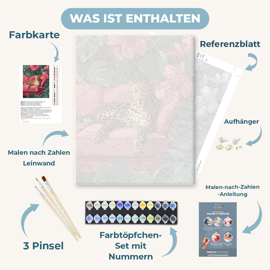 Unser "Malen nach Zahlen - Wilde Eleganz" Motiv lädt Dich auf eine kreative Entdeckungsreise ein. Du kannst Dich in aller Ruhe entspannen und den Malprozess genießen – wir liefern Dir alle passenden Malutensilien in einem rundum-sorglos DIY Set, sodass Du Dich allein auf die Kunst konzentrieren kannst.