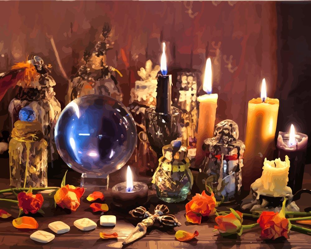 Malen nach Zahlen - Kristallkugel mit Kerzen