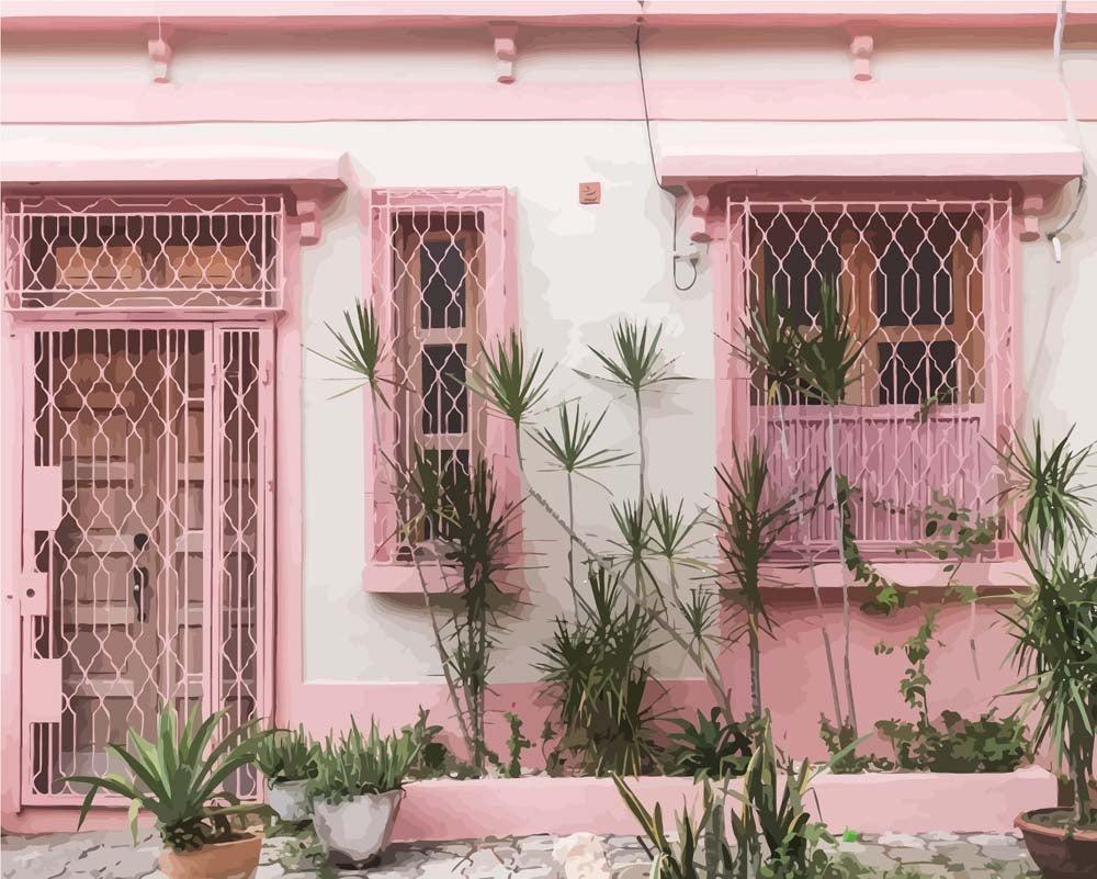 Malen nach Zahlen - Pinkes Haus in den Tropen