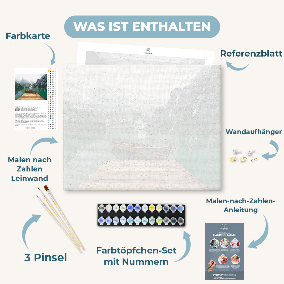 Unser "Malen nach Zahlen - Berge und See in den Dolomiten" Motiv lädt Dich auf eine kreative Entdeckungsreise ein. Du kannst Dich in aller Ruhe entspannen und den Malprozess genießen – wir liefern Dir alle passenden Malutensilien in einem rundum-sorglos DIY Set, sodass Du Dich allein auf die Kunst konzentrieren kannst.