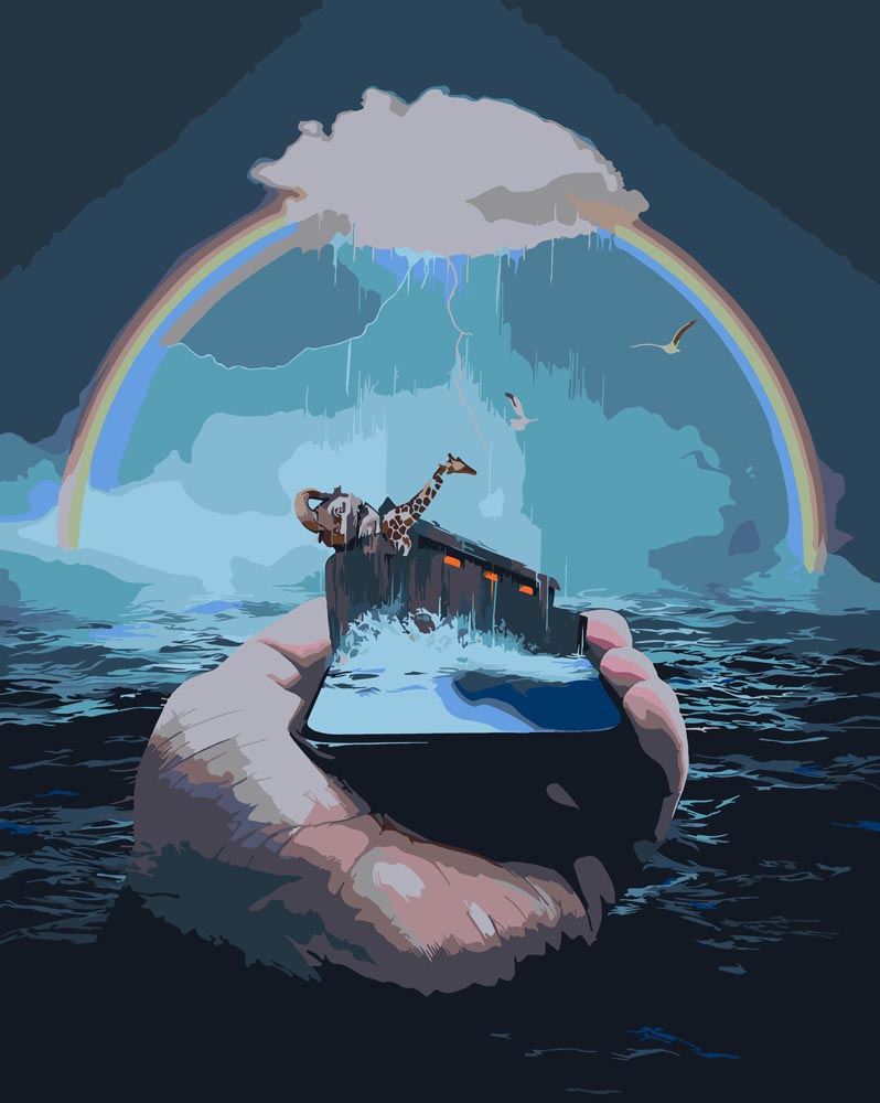 Dann sind unsere Malen nach Zahlen Sets genau das richtige für Dich! Lasse Deinen Gedanken freien Lauf und tauche ein in die vielfältige Welt der bunten Farben! Unser Motiv "Malen nach Zahlen - Noahs Arche im Smartphone" wird auch Dich künstlerisch bereichern und Dein Zuhause verschönern.