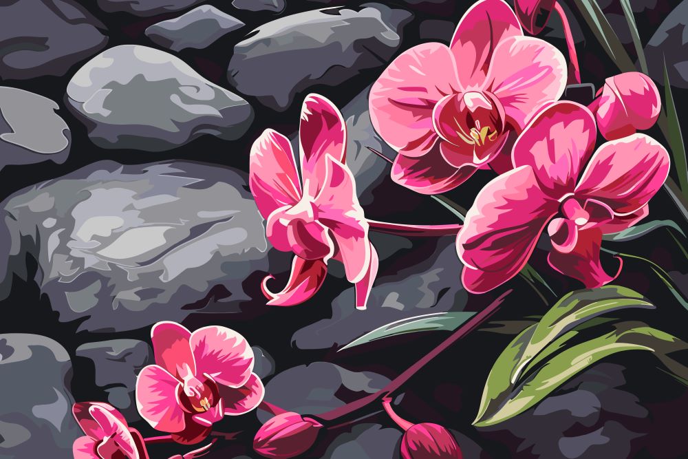 Malen nach Zahlen - Orchidee mit Zen Steinen - Premium Painting